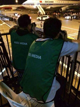 ??? 習近平主席的專機,降落在布里斯班,已經(jīng)是當?shù)貢r間14日晚上9點50左右,話說布里斯班白天驕陽灼人,太陽一落山氣溫蹭蹭下降,等候?qū)C抵達的記者要是沒加件外套,就只能挨凍啦!