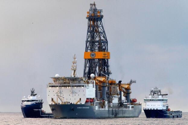圖為11月15日,在西班牙蘭薩羅特島海岸,一艘石油勘探船正在作業(yè)。