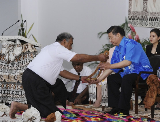 ????據斐濟官員介紹,這是當地給予最尊貴客人的禮遇,表達為客人“洗塵”之意。記者不由想到,中國文化中也有為客人“接風洗塵”的說法,看來中斐兩國盡管相距遙遠,文化還真頗有相通之處。