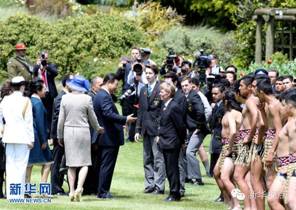 ????新西蘭的歡迎儀式頗具特色。習近平主席和夫人彭麗媛抵達時,毛利族人排著整齊列隊,表演挑戰(zhàn)儀式,以毛利族最古老的迎賓禮歡迎最尊貴的客人。