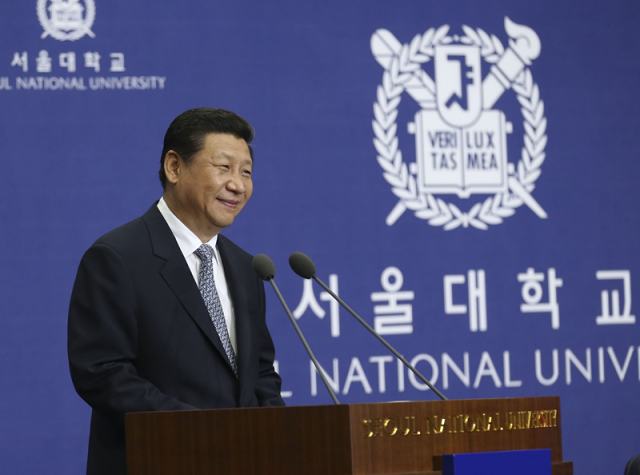 ——2014年7月4日,習(xí)主席在韓國國立首爾大學(xué)發(fā)表了題為《共創(chuàng)中韓合作未來 同襄亞洲振興繁榮》的重要演講。