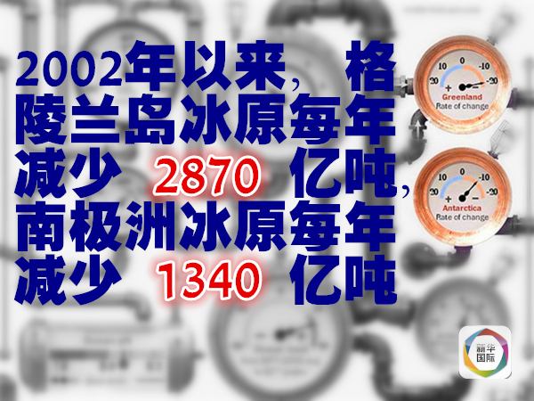 科學(xué)家認定,由于氣溫和海水溫度升高的雙重影響,分別位于格陵蘭島和南極洲的地球兩大冰原正在消失。美國國家航空航天局噴氣推進實驗室收集的衛(wèi)星數(shù)據(jù)顯示,2002年以來,格陵蘭島冰原每年減少2870億噸,南極洲冰原每年減少1340億噸。