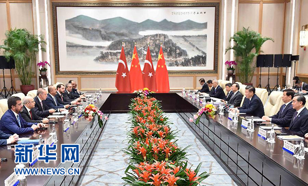 9月3日,國家主席習(xí)近平在杭州會(huì)見來華出席二十國集團(tuán)領(lǐng)導(dǎo)人杭州峰會(huì)的土耳其總統(tǒng)埃爾多安。 新華社記者 李濤 攝