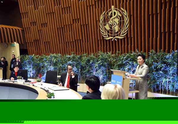 1月18日,國家主席習(xí)近平夫人、世界衛(wèi)生組織結(jié)核病和艾滋病防治親善大使彭麗媛應(yīng)世界衛(wèi)生組織總干事陳馮富珍和聯(lián)合國艾滋病規(guī)劃署執(zhí)行主任西迪貝邀請,在瑞士日內(nèi)瓦出席為她舉行的親善大使任期續(xù)延暨頒獎儀式。這是彭麗媛在儀式上致辭。新華社記者謝環(huán)馳攝