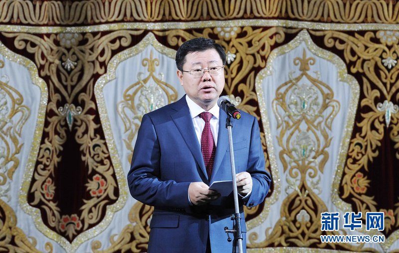 ?  1月18日晚,烏茲別克斯坦首都塔什干人民友誼宮,中國駐烏茲別克斯坦大使孫立杰在講話。新華網(wǎng)記者 沙達提 攝