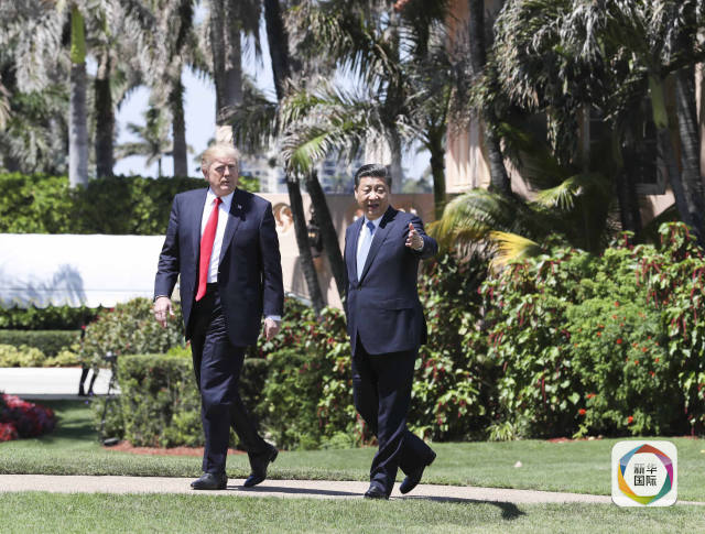 當?shù)貢r間4月7日,國家主席習近平在美國佛羅里達州海湖莊園同美國總統(tǒng)特朗普舉行中美元首第二場正式會晤。會晤后,習近平同特朗普到秀麗宜人的海湖莊園中散步,在輕松友好的氣氛中繼續(xù)就兩國友好合作進行討論。(新華社記者饒愛民攝)