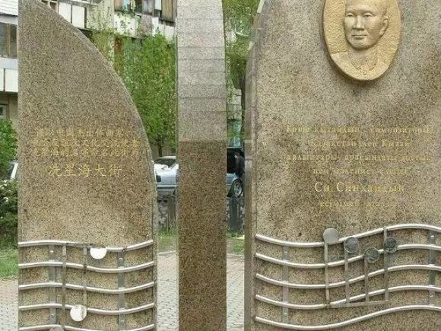 哈薩克斯坦阿拉木圖市冼星海大街上的冼星海紀(jì)念碑。