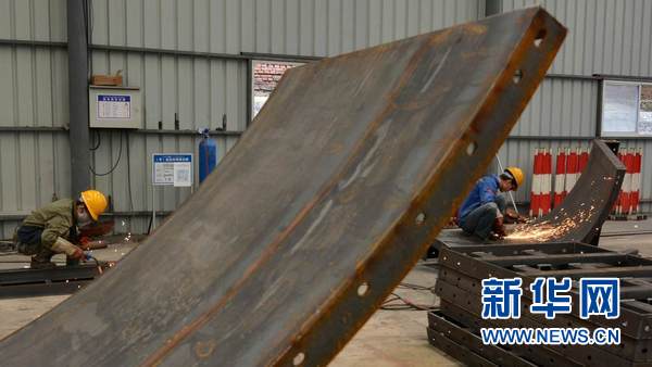 3月27日,在老撾南塔省,中鐵五局工人在車間內(nèi)加工鐵路施工材料。新華網(wǎng)發(fā) 劉艾倫攝