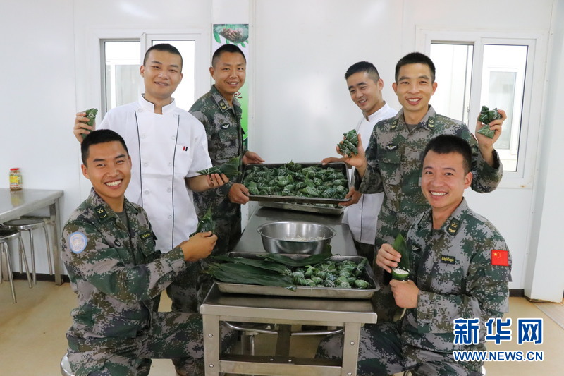 “官兵們在遠(yuǎn)離祖國和親人的異國他鄉(xiāng)執(zhí)行維和任務(wù),在端午節(jié)能夠吃到粽子是官兵們的共同心愿。”炊事班長彭照陽一邊包著粽子,一邊欣喜地對(duì)記者說。