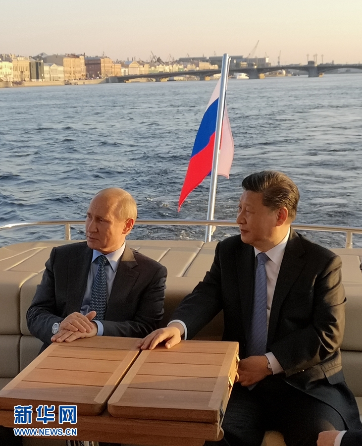 6月6日,國(guó)家主席習(xí)近平在圣彼得堡同俄羅斯總統(tǒng)普京再次舉行會(huì)晤。普京邀請(qǐng)習(xí)近平共同乘船游覽涅瓦河。普京歡迎習(xí)近平再次到訪他的家鄉(xiāng),并向習(xí)近平介紹圣彼得堡的風(fēng)土人情和沿途建筑。 新華社發(fā)